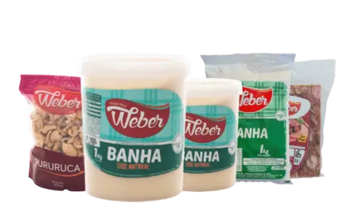 A linha de produtos de Banha e Torresmo do Frigorífico Weber oferece opções tradicionais e saborosas para o seu dia a dia. A Banha Colonial é conhecida por seu sabor autêntico e versatilidade na cozinha, ideal para preparar receitas tradicionais. A Pururuca de Carne, o Torresmo Pururuca e o Torresmo Prensado são perfeitos para quem aprecia o sabor crocante e a textura inconfundível desses clássicos, ideais tanto como petisco quanto acompanhamento.
