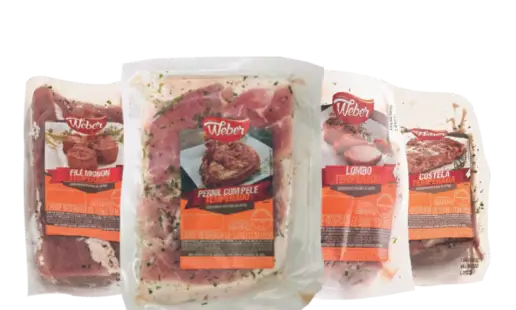 A Linha de Carnes Suínas Embaladas Weber oferece uma seleção de cortes e produtos que combinam qualidade e conveniência, sendo ideal para diversas preparações culinárias. Cada item é cuidadosamente embalado para garantir frescor e sabor.